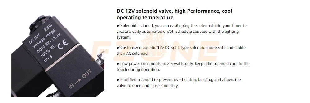 This solenoid can be plugged into a timer of your choosing for automatic functionality. This unit remains cool during operation, and it is very quiet. In addition, it consumes only 2.5 watts, making it very energy efficient.